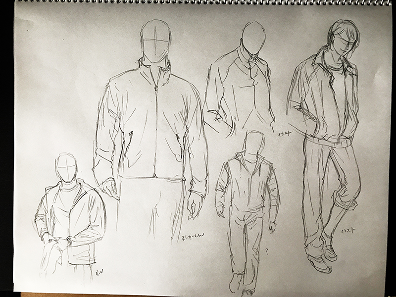 今日は手のクロッキーとジャージのスケッチを…